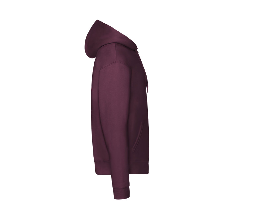 Außenseite 100 % gekämmte Baumwolle für besseren Halt. Gefütterte Kapuze mit Zugband in passender Farbe. 2 Fronttaschen. Reißverschluss aus Metall. Unsichtbarer Reißverschluss für gleichmäßiges Bedrucken.