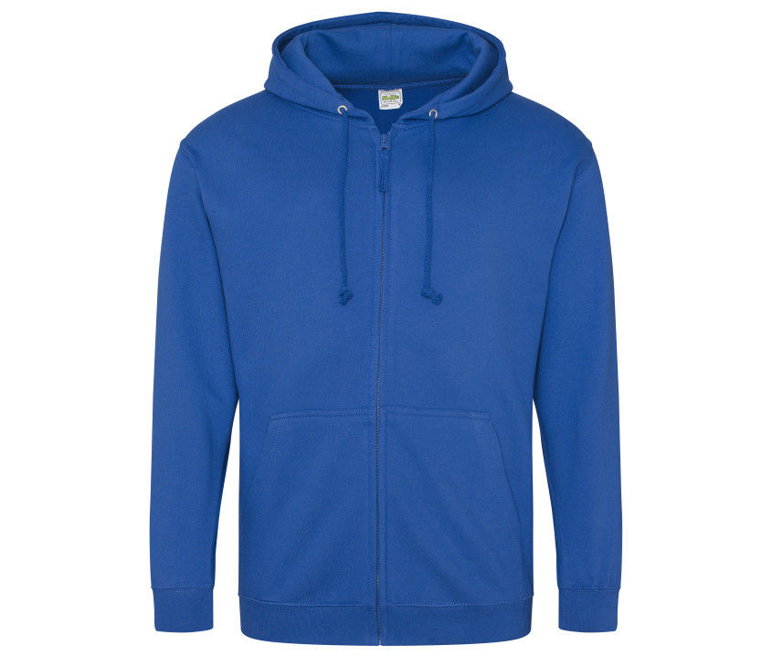 Durchgehender Reißverschluss. Innen gebürstet. Unsichtbarer Reißverschluss. Gefütterte Kapuze mit Zugbändern in passender Farbe. 2 Fronttaschen. Rippenbündchen an Ärmel und Saum. Ablösbares Etikett.