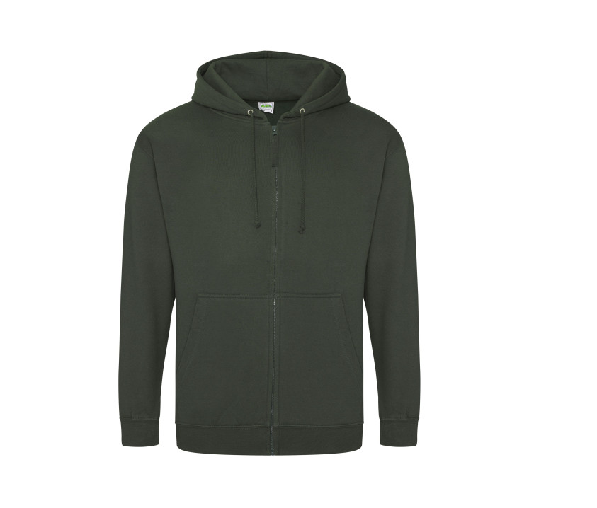 Durchgehender Reißverschluss. Innen gebürstet. Unsichtbarer Reißverschluss. Gefütterte Kapuze mit Zugbändern in passender Farbe. 2 Fronttaschen. Rippenbündchen an Ärmel und Saum. Ablösbares Etikett.