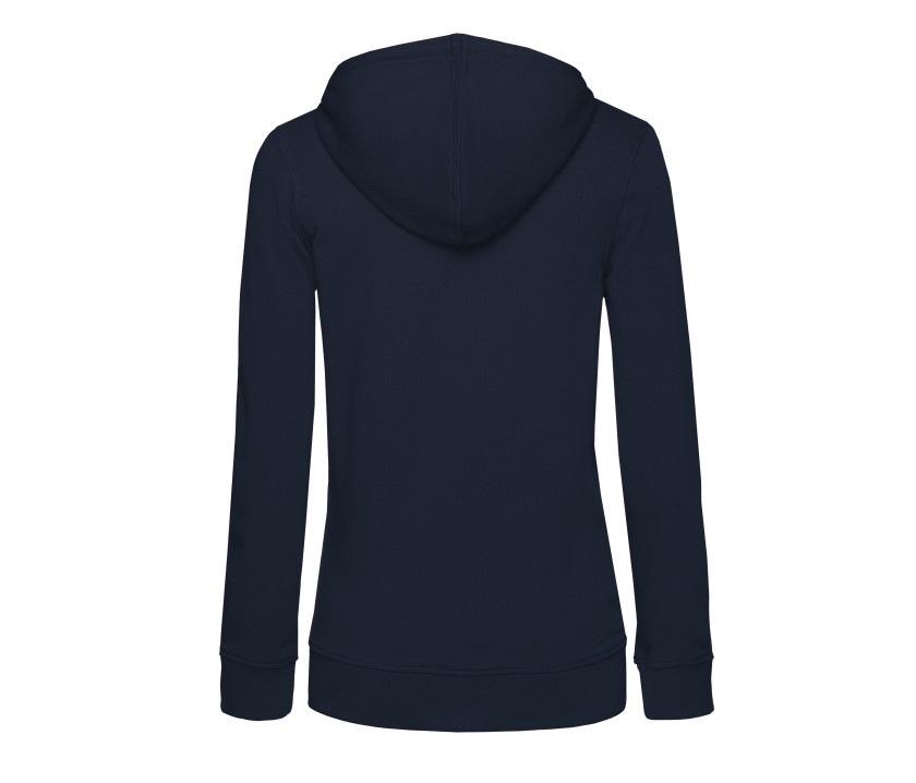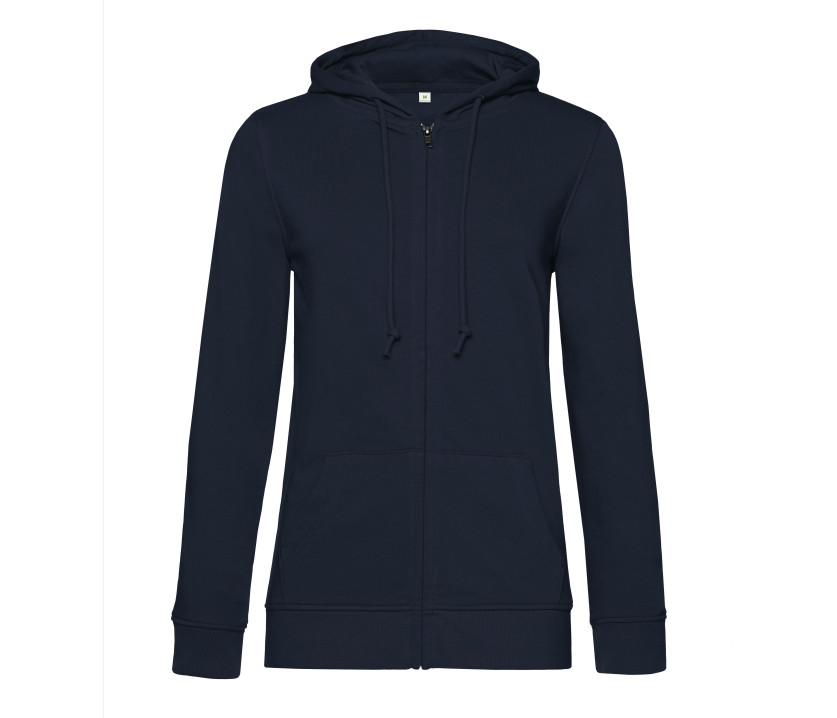 Damen Kapuzen Sweatshirt mit Reißverschluss, aus organischer Baumwolle oder organischer Baumwolle in Konversion und mit modischem Design. Weibliche Passform. Seitliche Nähte für perfekt an maskuline Silhouetten angepasste Formen. Ohne Markenetikett. Nackenband in Fischgrät-Optik. Bedeckter Metall-Reißverschluss. Gefütterte Kapuze mit Zugbändern. 100 % Baumwolle außen. French Terry: innen nicht angeraut. Widerstandsfähiges Gewebe und besonders weicher Griff.