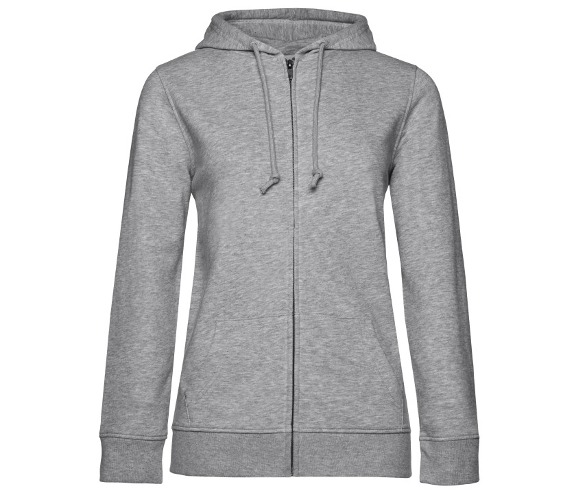 Damen Kapuzen Sweatshirt mit Reißverschluss, aus organischer Baumwolle oder organischer Baumwolle in Konversion und mit modischem Design. Weibliche Passform. Seitliche Nähte für perfekt an maskuline Silhouetten angepasste Formen. Ohne Markenetikett. Nackenband in Fischgrät-Optik. Bedeckter Metall-Reißverschluss. Gefütterte Kapuze mit Zugbändern. 100 % Baumwolle außen. French Terry: innen nicht angeraut. Widerstandsfähiges Gewebe und besonders weicher Griff.