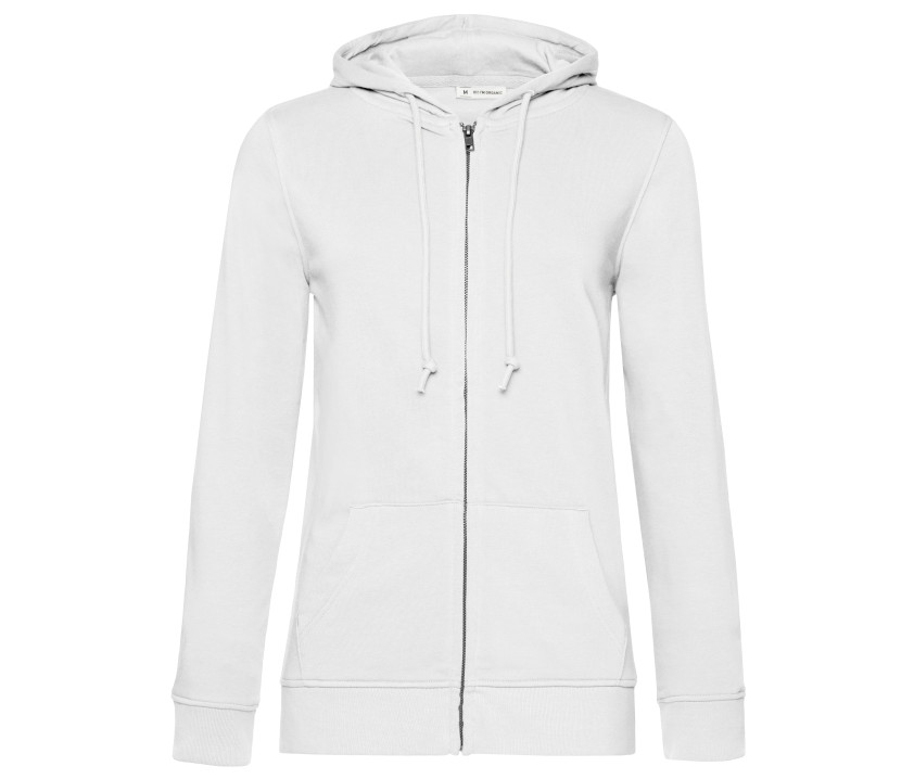 Damen Kapuzen Sweatshirt mit Reißverschluss, aus organischer Baumwolle oder organischer Baumwolle in Konversion und mit modischem Design. Weibliche Passform. Seitliche Nähte für perfekt an maskuline Silhouetten angepasste Formen. Ohne Markenetikett. Nackenband in Fischgrät-Optik. Bedeckter Metall-Reißverschluss. Gefütterte Kapuze mit Zugbändern. 100 % Baumwolle außen. French Terry: innen nicht angeraut. Widerstandsfähiges Gewebe und besonders weicher Griff.
