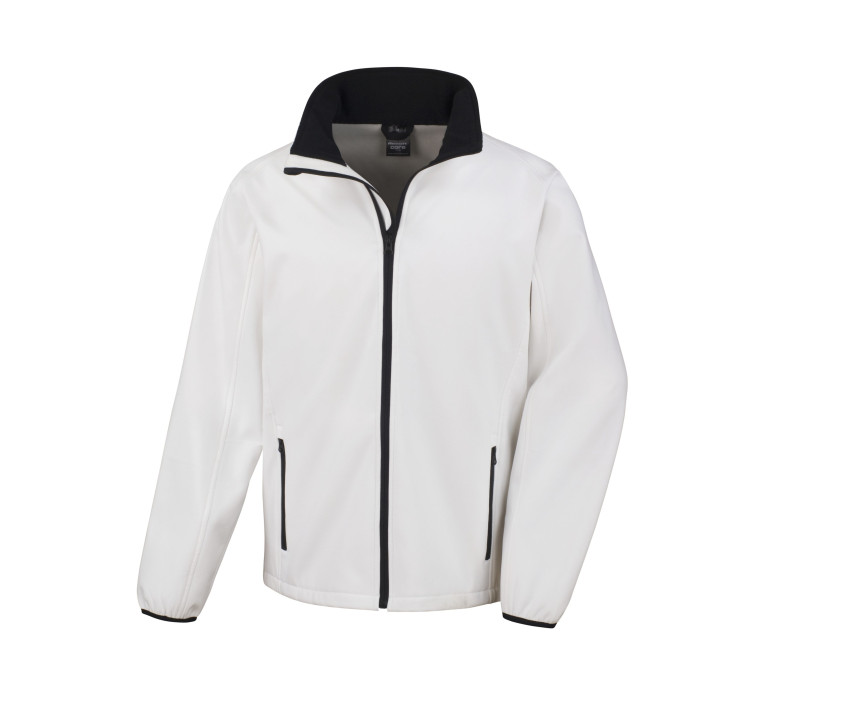 Bedruckbare Herren Softshelljacke - 2 Lagen. Großer YKK-Reißverschluss. 2 Taschen mit Reißverschluss. Schutz für das Kinn. Elastische Bündchen an den Ärmeln.