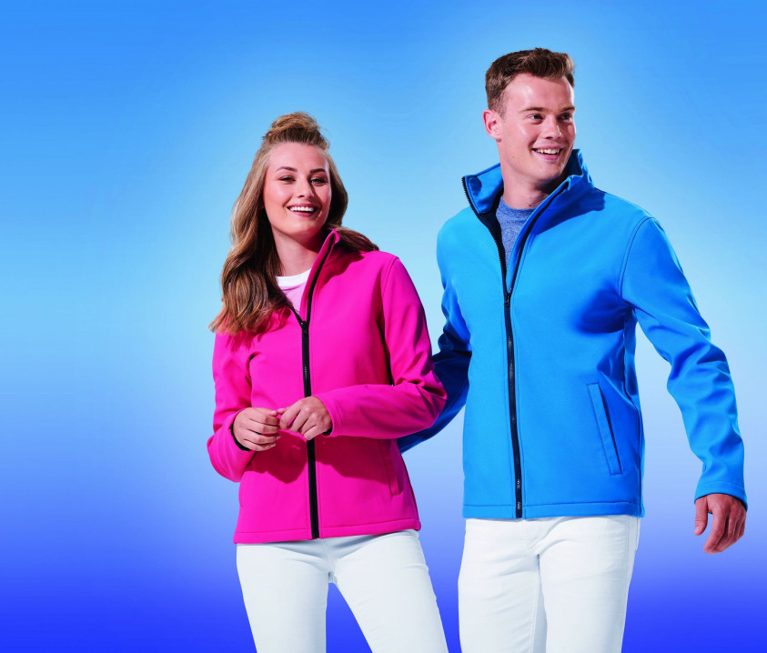 Herren-Softshelljacke - Innenliegende Windleiste. 2 Fronttaschen mit Reißverschluss. Per elastischem Zugband Verstellbare Größe.