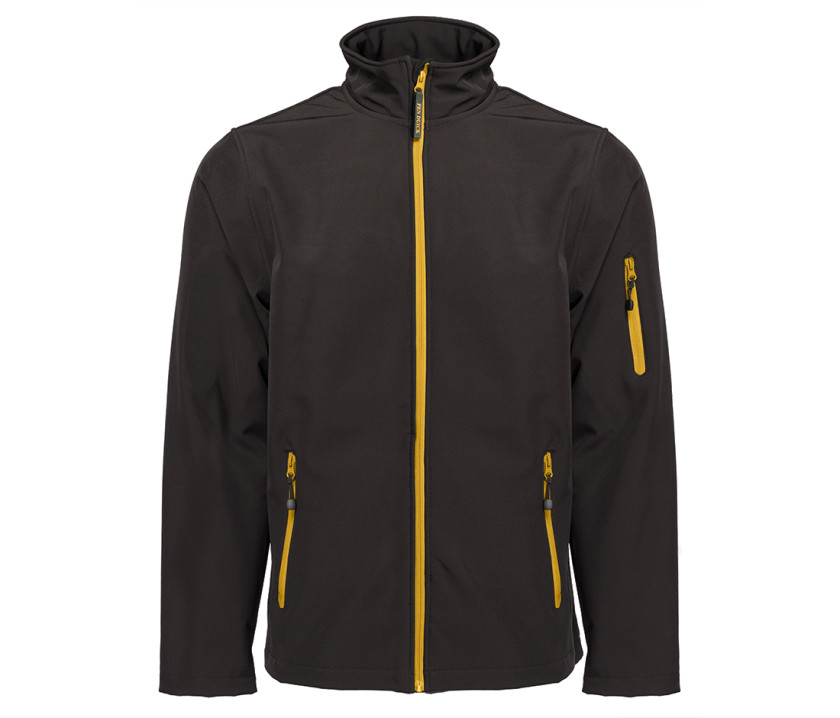 3-lagige Softshelljacke für Herren - 3-lagig. Atmungsaktiv, wasserdicht und winddicht. Innenschutzklappe unter Reißverschluss und Kinnschutz. Lasche Pen Duick abnehmbar am Hauptreißverschluss.