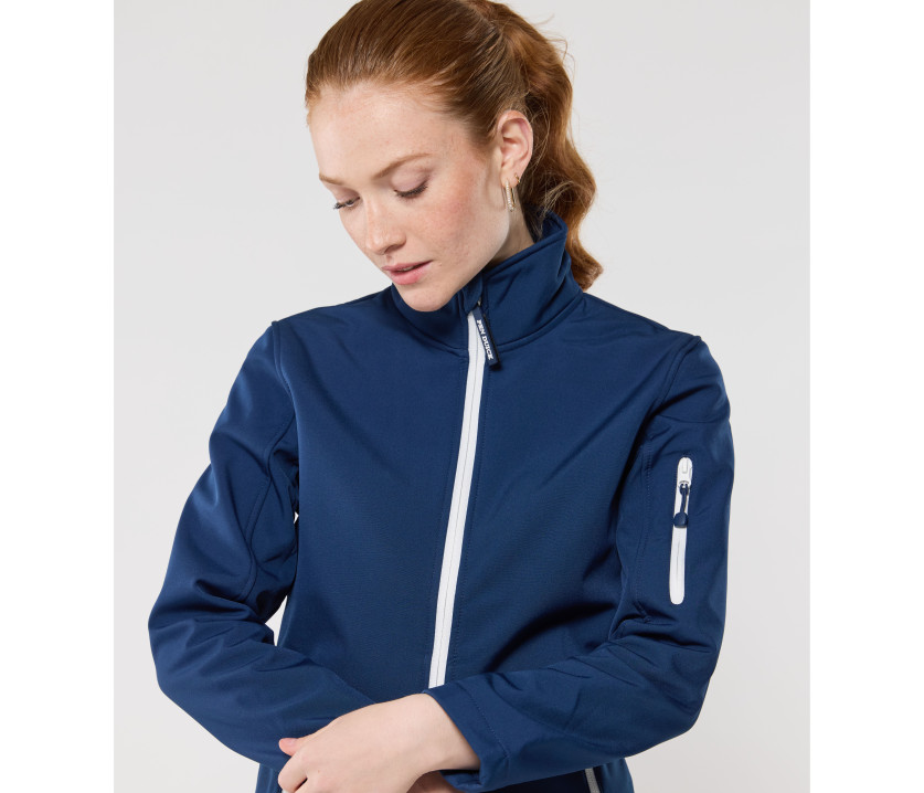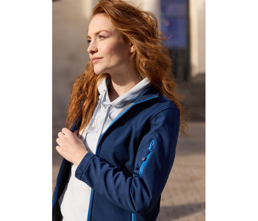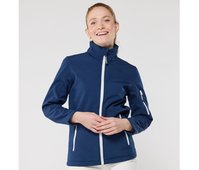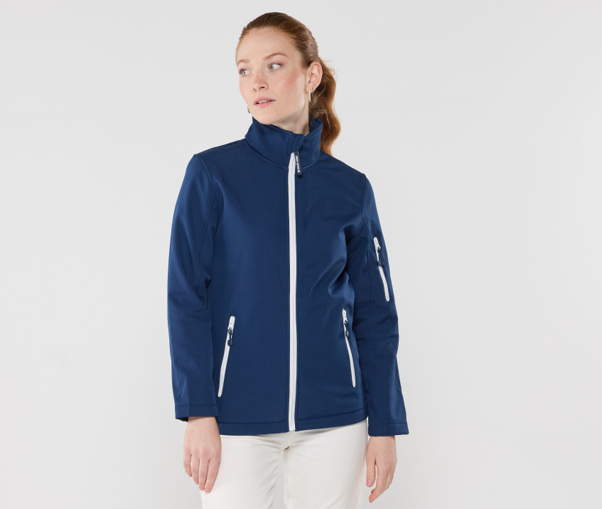 3-lagige Softshelljacke für Damen - 3-lagig. Atmungsaktiv, wasserdicht und winddicht. Innenschutzklappe unter Reißverschluss und Kinnschutz. Lasche Pen Duick abnehmbar am Hauptreißverschluss.