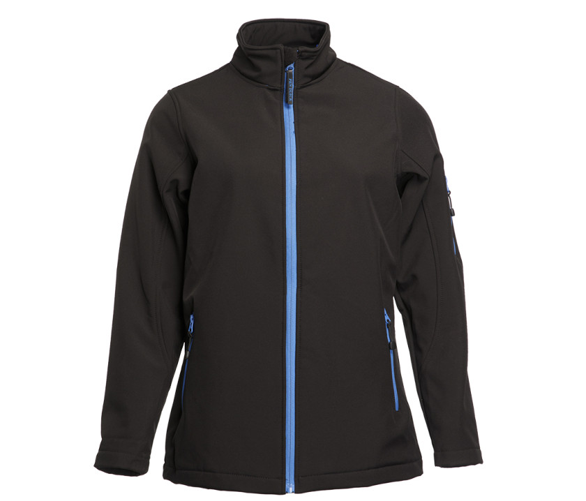 3-lagige Softshelljacke für Damen - 3-lagig. Atmungsaktiv, wasserdicht und winddicht. Innenschutzklappe unter Reißverschluss und Kinnschutz. Lasche Pen Duick abnehmbar am Hauptreißverschluss.