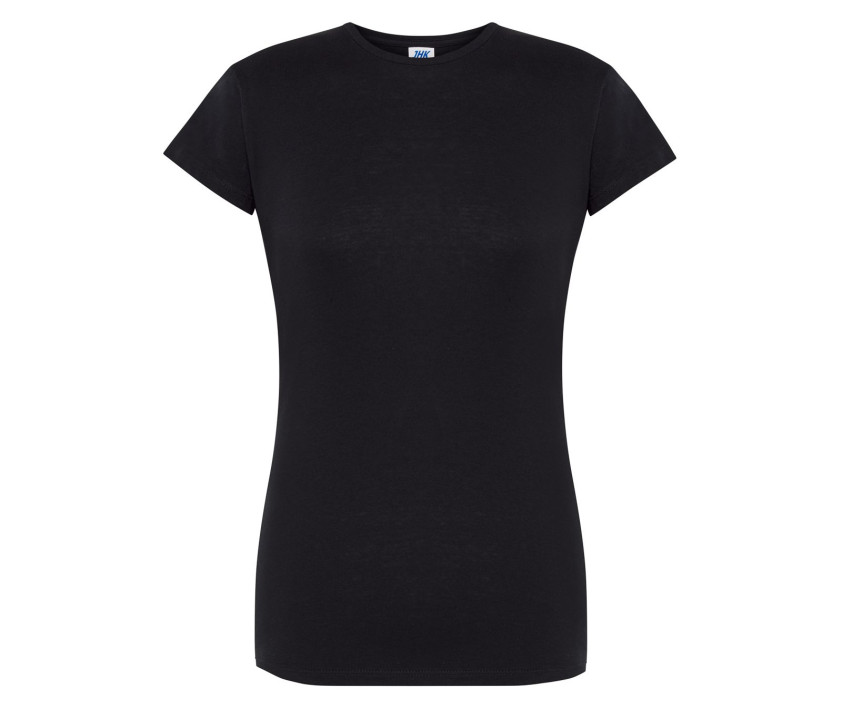 Rundhals-T-Shirt für Damen 155 - Tailliert. Jerseystoff. Doppelte Steppnaht am Hals, Schultern und Bund.