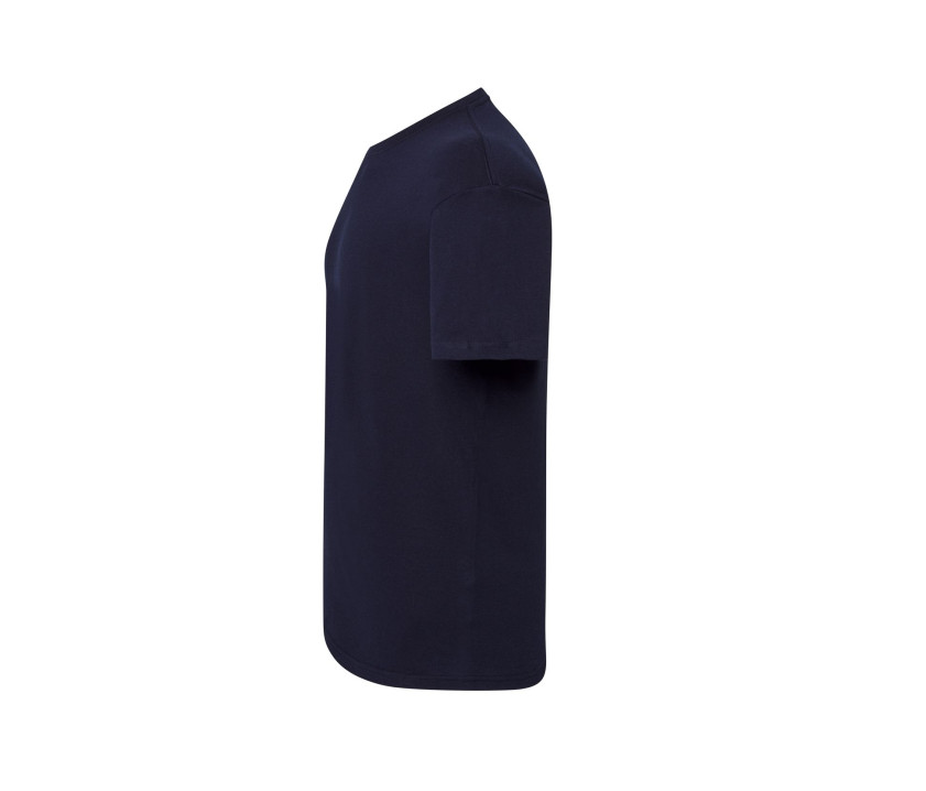 Rundhals-T-Shirt 170 - Schlauchschnitt. Doppelte Steppnaht am Hals, Schultern und Bund. Rippenbündchen mit Elasthan am Kragen.