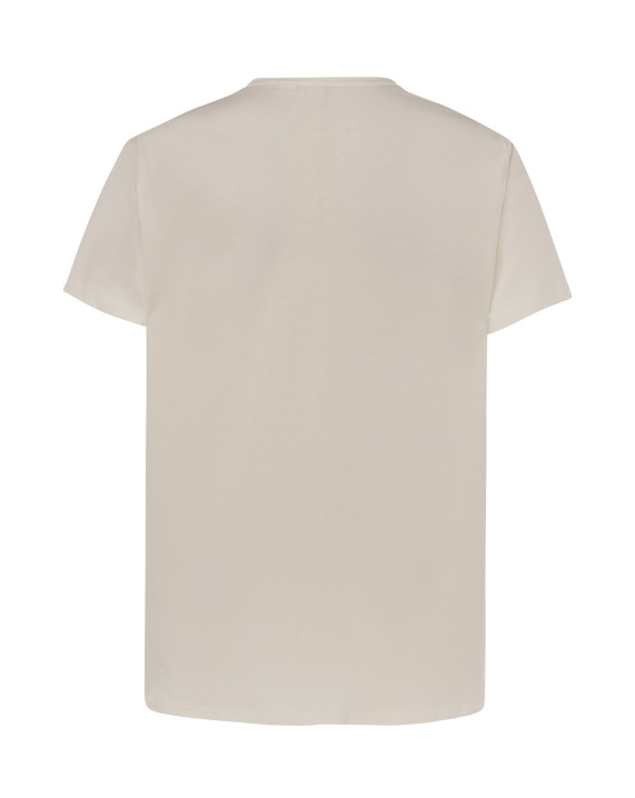 Schlauchschnitt. Doppelte Steppnaht am Hals, Schultern und Bund. Rippenbündchen mit Elastan am Kragen. Nackenband an Kragen und Schultern. Farbe Prepared For dye : Die Maße schrumpfen nach dem Färben um eine Größe.