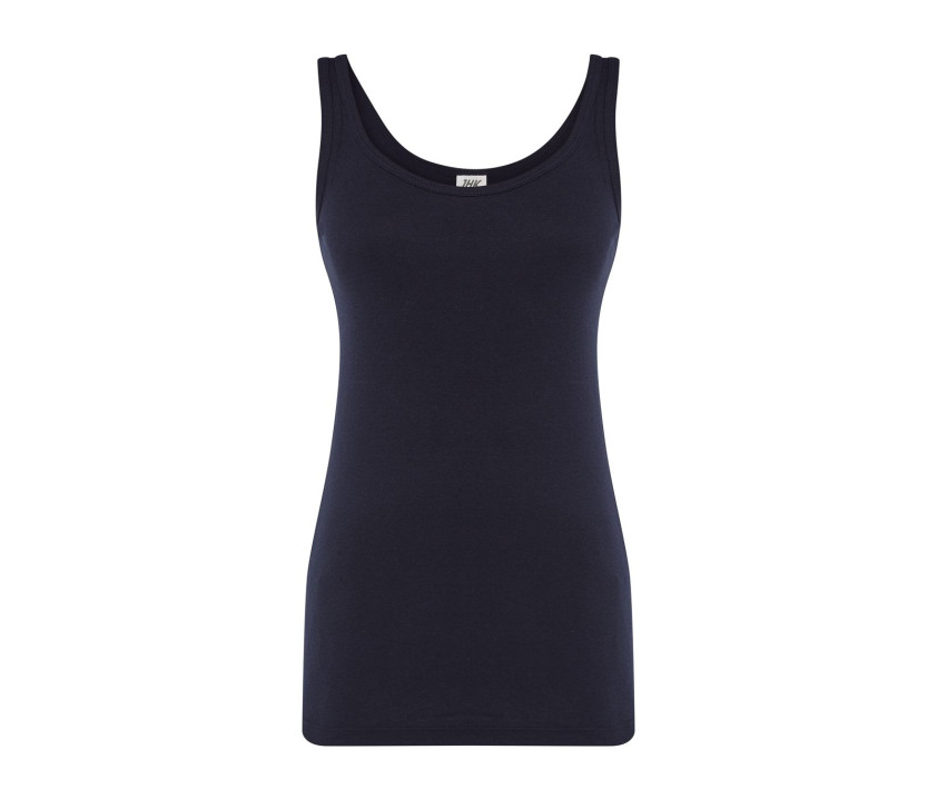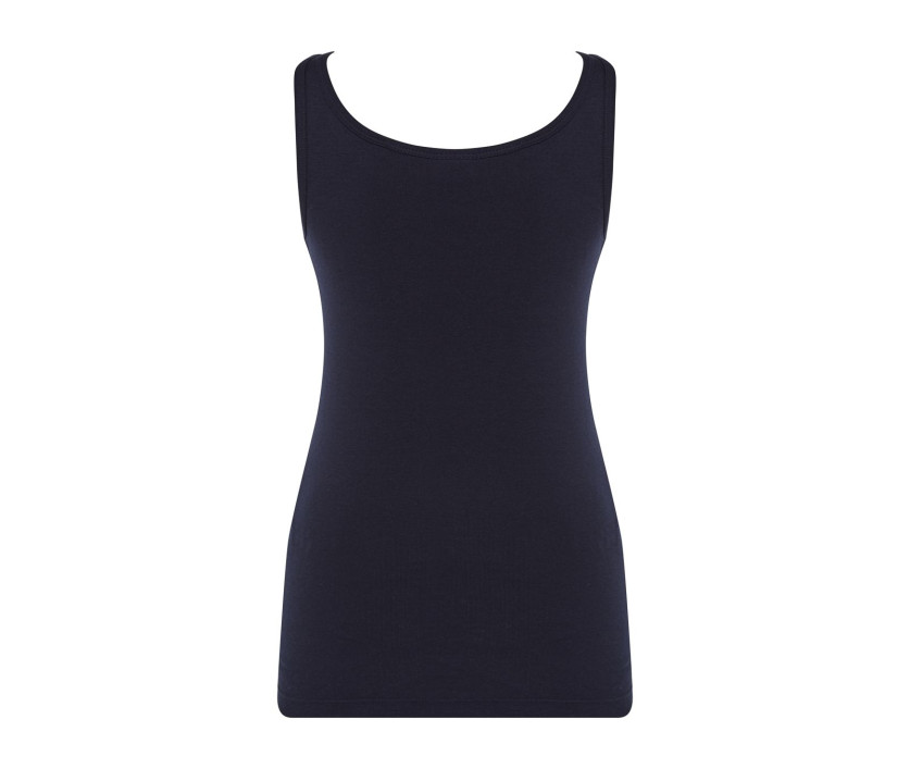 Anliegende Passform. Dünne Träger. Ablösbares Etikett. 1x1-Rippenbündchen.