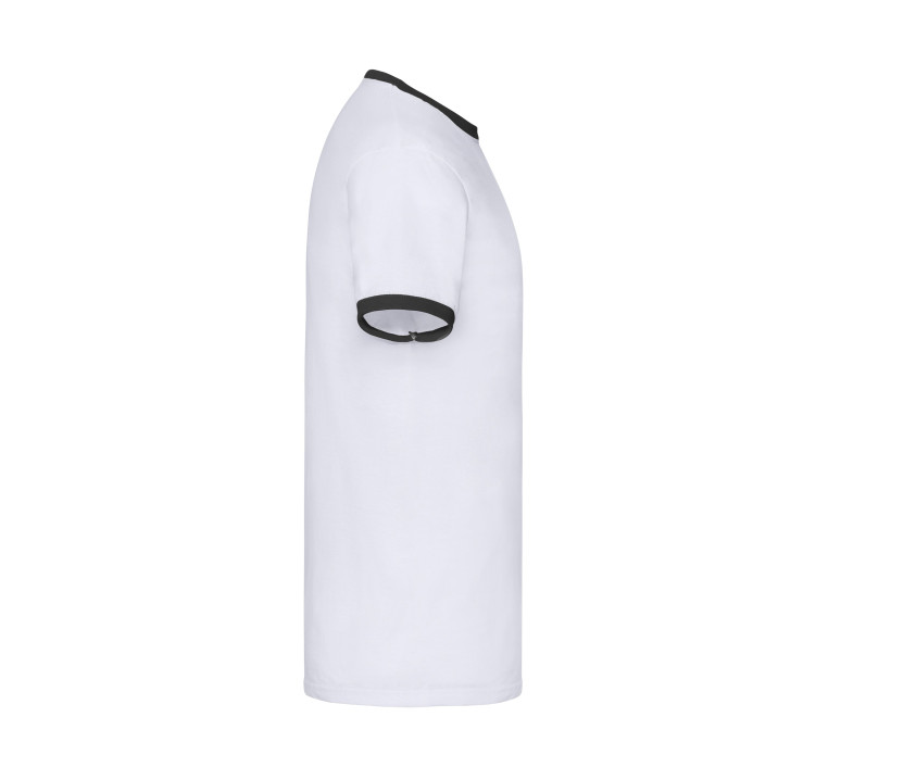 T-Shirt mit Rippenbündchen mit Farbkontrasten - Rundhalsausschnitt in Kontrastfarbe aus Rippenbündchen in Baumwolle/Lycra®. Nackenband aus dem gleichen Gewebe am Kragenrevers. Feineres Gewebe und Gauge für hochauflösendes Drucken.
