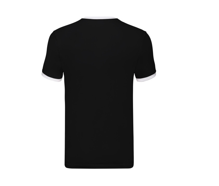 T-Shirt mit Rippenbündchen mit Farbkontrasten - Rundhalsausschnitt in Kontrastfarbe aus Rippenbündchen in Baumwolle/Lycra®. Nackenband aus dem gleichen Gewebe am Kragenrevers. Feineres Gewebe und Gauge für hochauflösendes Drucken.