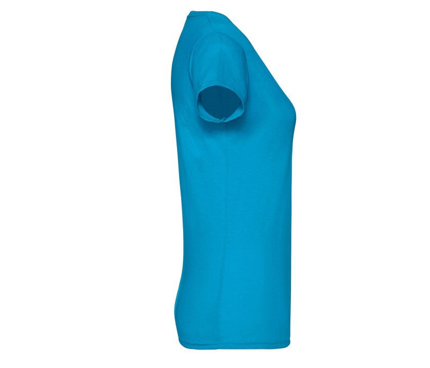Damen-T-Shirt mit Rundhalsausschnitt - Runder Halsausschnitt mit Nackenband aus dem gleichen Gewebe am Kragenrevers. Seitliche Nähte für weibliche, taillierte Passform. Feineres Gewebe und Gauge für hochauflösendes Drucken.