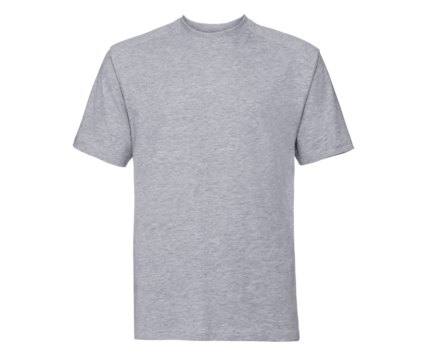 Strapazierfähiges Arbeits-T-Shirt - Klassische Passform. Kragen und Ärmelabschlüsse aus doppeltem Flachstrick. Einsatz halbmondförmig.