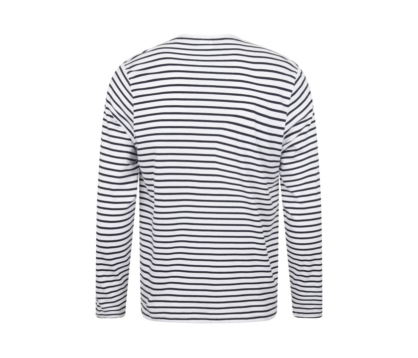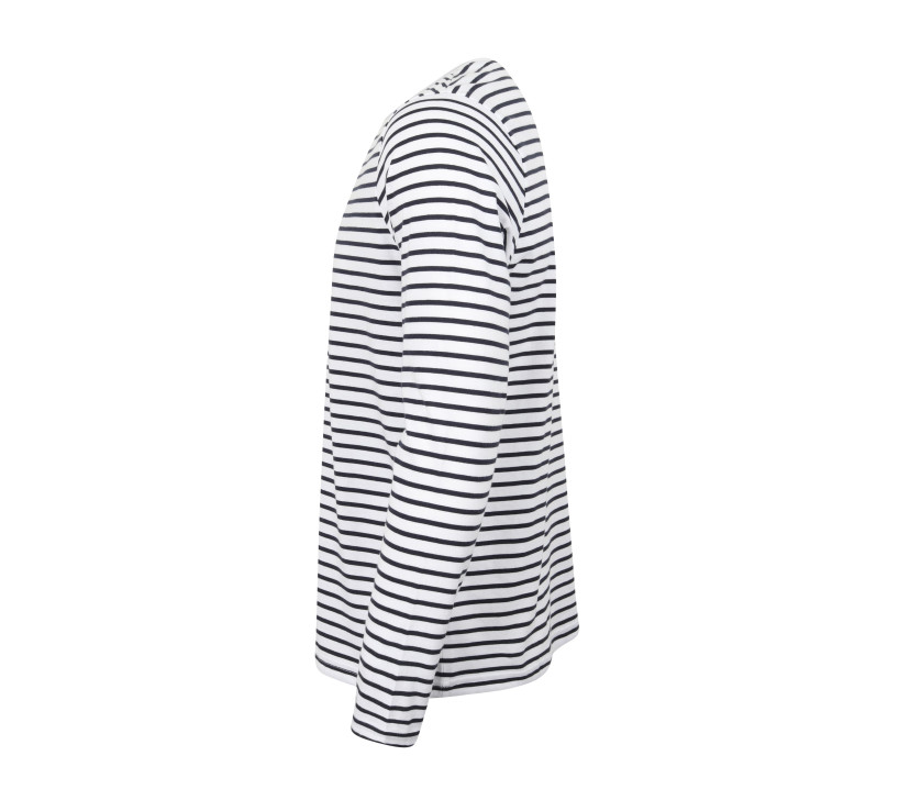 Langärmeliges Unisex-T-Shirt im Marinelook. Klassische Passform. Ablösbares Etikett. Runder Halsausschnitt mit Stretch-Rippenbündchen. Doppelte Steppnaht an Kragen, Ärmeln und unten. Kurze Ärmel Ref. SF202.