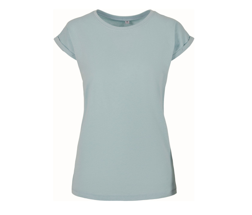 Damen-T-Shirt - Lange Passform. Verkürzte Ärmel. Ärmelenden zusammengefaltet.