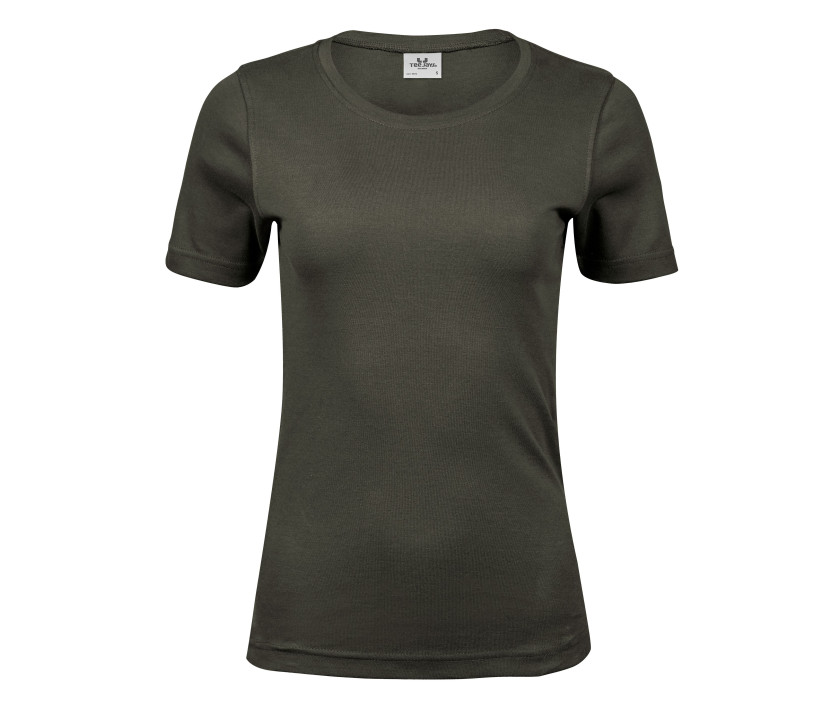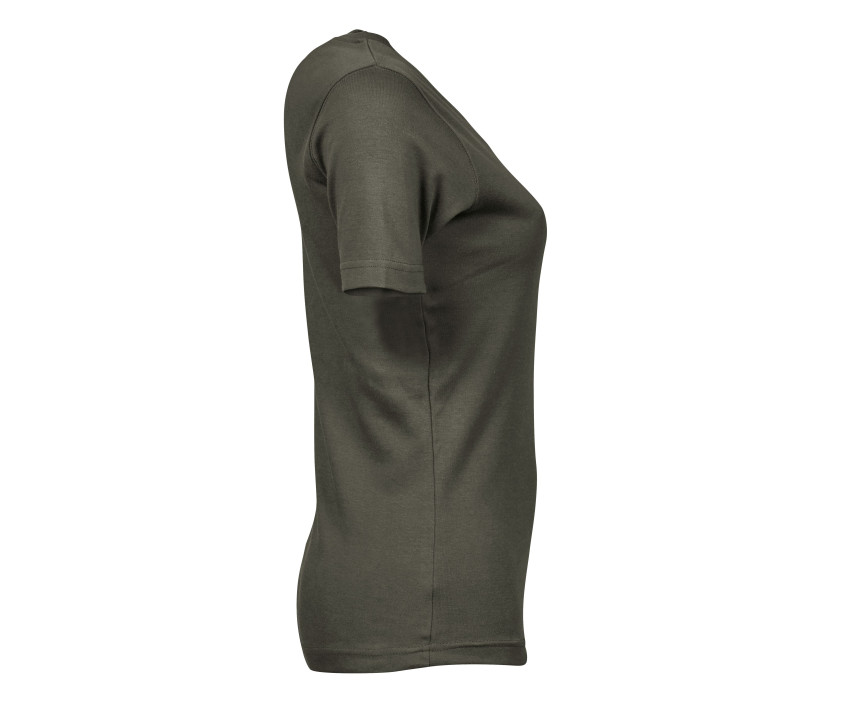 Damen-T-Shirt - Anliegende Passform. Rippenbündchen am Hals. Doppelnähte. Mit Enzymen gewaschen.