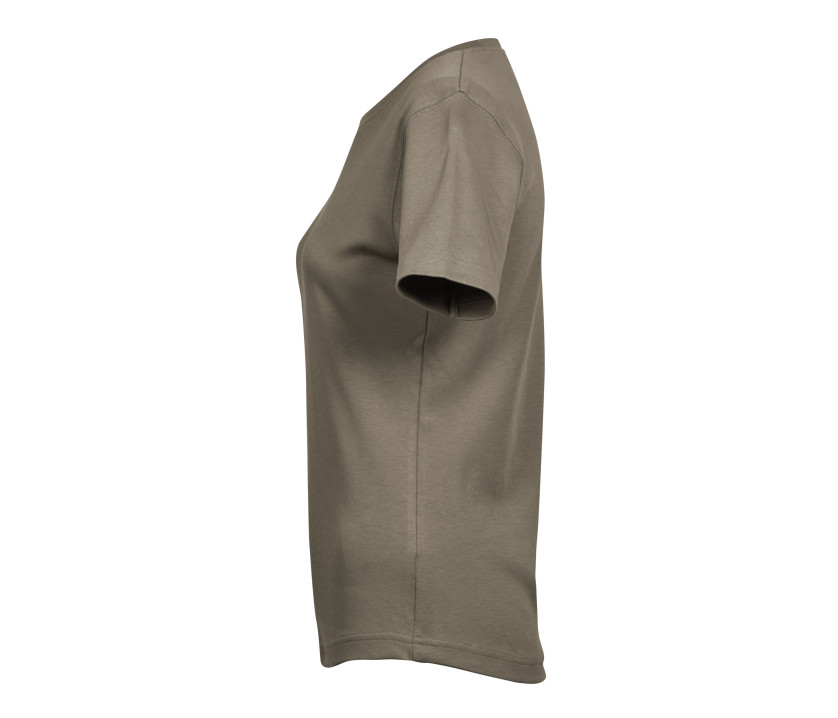 Damen-T-Shirt - Anliegende Passform. Rippenbündchen am Hals. Doppelnähte. Mit Enzymen gewaschen.
