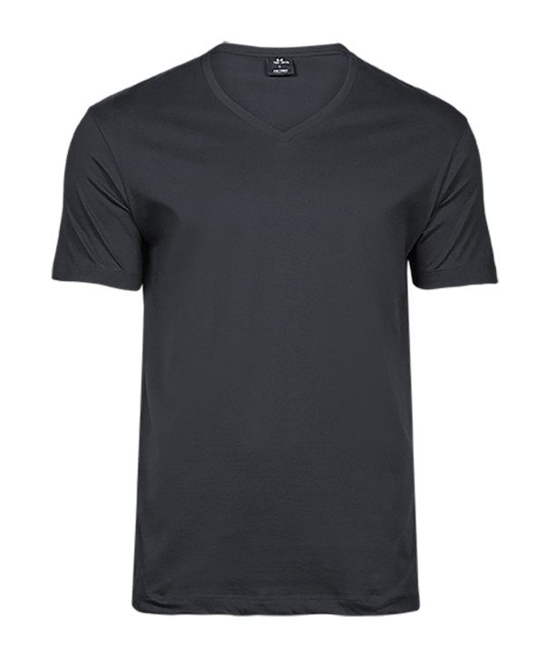 Anliegende Passform. V-Ausschnitt. Mit Lycra® gefütterter Halsausschnitt. Nackenband. Doppelnähte. Vorgewaschene Baumwolle. Waschbar bei 60 °C.