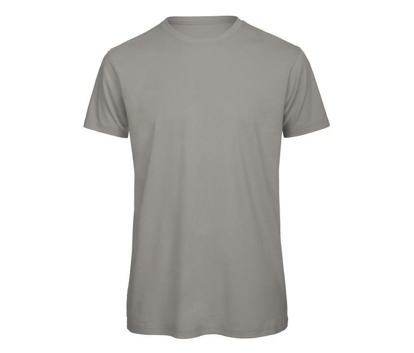 Herren-T-Shirt aus Bio-Baumwolle oder Bio in Konversion. Tailliert. Kurze Ärmel. Seitliche Nähte. Soft-Touch. Kragen in feinem Rippstrick. Nackenband. Glatte Oberfläche, für sauberes genaues Drucken.