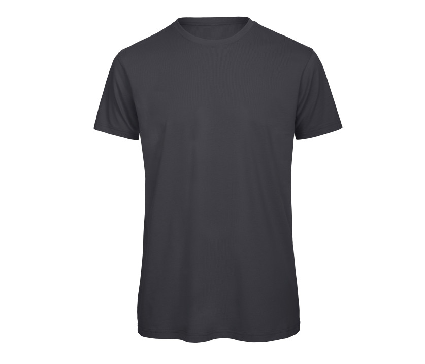 Herren-T-Shirt aus Bio-Baumwolle oder Bio in Konversion. Tailliert. Kurze Ärmel. Seitliche Nähte. Soft-Touch. Kragen in feinem Rippstrick. Nackenband. Glatte Oberfläche, für sauberes genaues Drucken.