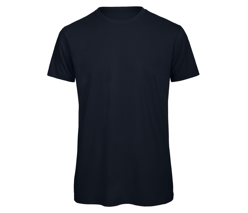 Herren-T-Shirt aus Bio-Baumwolle oder Bio in Konversion. Tailliert. Kurze Ärmel. Seitliche Nähte. Soft-Touch. Kragen in feinem Rippstrick. Nackenband. Glatte Oberfläche, für sauberes genaues Drucken.