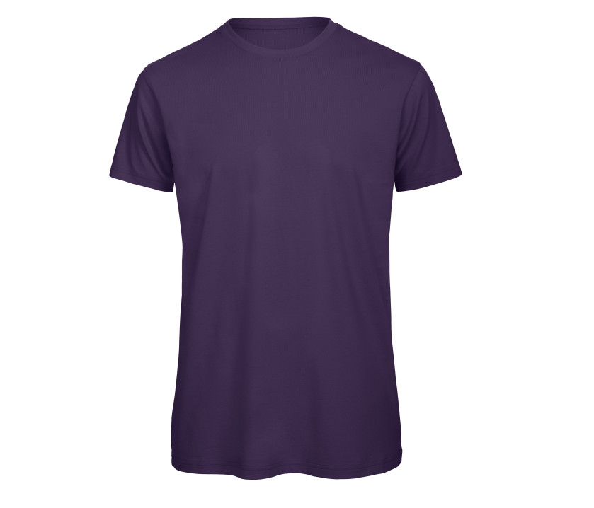 Herren-T-Shirt aus Bio-Baumwolle oder Bio in Konversion. Tailliert. Kurze Ärmel. Seitliche Nähte. Soft-Touch. Kragen in feinem Rippstrick. Nackenband. Glatte Oberfläche, für sauberes genaues Drucken.