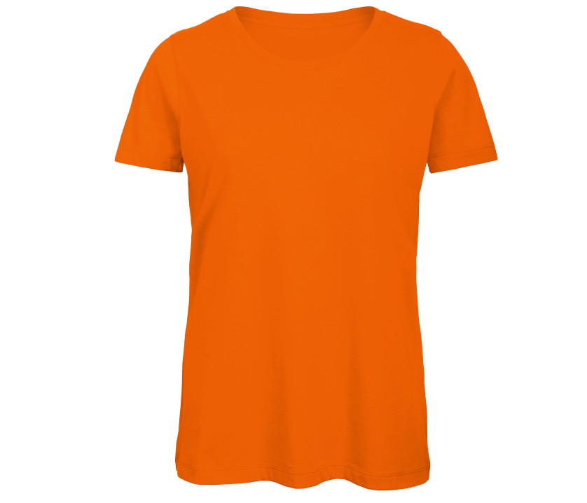 T-Shirt für Damen aus Bio-Baumwolle oder Bio in Konversion. Tailliert. Kurze Ärmel. Seitliche Nähte. Soft-Touch. Kragen in feinem Rippstrick. Nackenband. Glatte Oberfläche, für sauberes genaues Drucken.