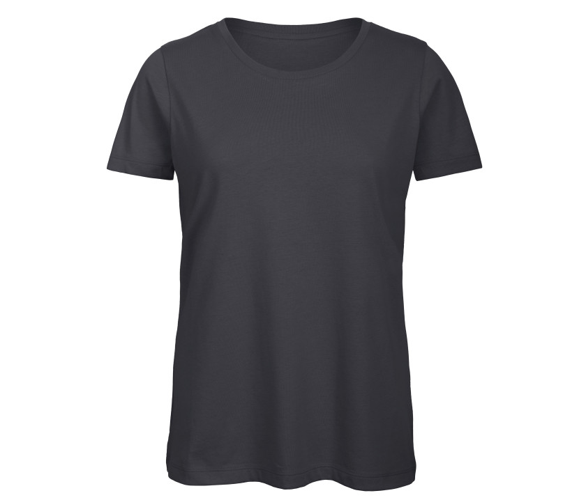 T-Shirt für Damen aus Bio-Baumwolle oder Bio in Konversion. Tailliert. Kurze Ärmel. Seitliche Nähte. Soft-Touch. Kragen in feinem Rippstrick. Nackenband. Glatte Oberfläche, für sauberes genaues Drucken.
