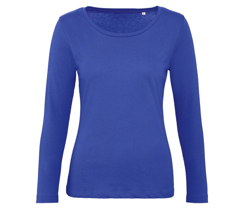 T-Shirt aus organischer Baumwolle oder Bio in Konversion Frau LSL. Medium Fit-Passform, besonders weicher Griff. Seitliche Nähte. Nackenband. Großer Ausschnitt. Kein Markenetikett im Kragen.
